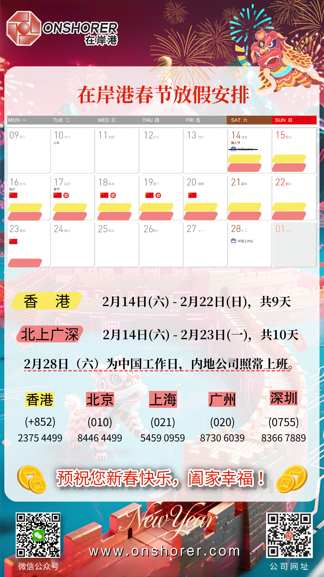 在岸港 2026 春節(jié)假期安排如下