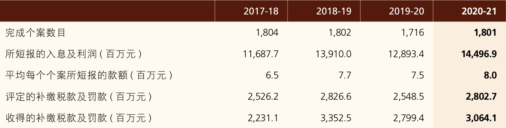 ▲香港稅務(wù)局:實(shí)地審核及調(diào)查科成績(jī)