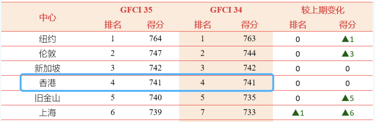 該指數(shù)從營(yíng)商環(huán)境、人力資本、基礎(chǔ)設(shè)施、金融業(yè)發(fā)展水平、聲譽(yù)等方面對(duì)全球121個(gè)主要金融中心進(jìn)行了評(píng)價(jià)和排名。其中,香港總排名維持第四位,整體評(píng)分741分。
