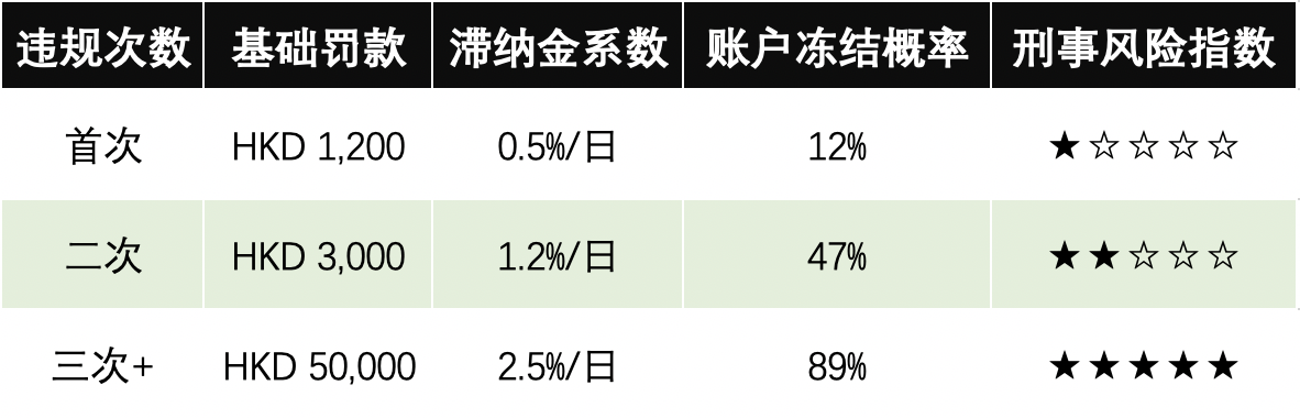 基于近三年稅務(wù)上訴案例數(shù)據(jù),進(jìn)行逾期成本測(cè)算,得出以下違規(guī)成本矩陣以供參考: